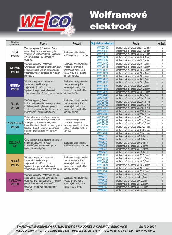 Wolframové elektrody pro TIG svařování. Podrobné informace v souboru Ke stažení